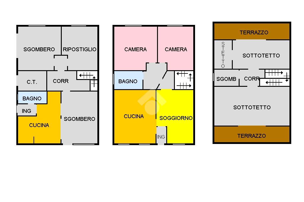 Salendo ulteriormente le scale, si accede al sottotetto, rifinito, composto da tre locali da cui si accede a due terrazzi.