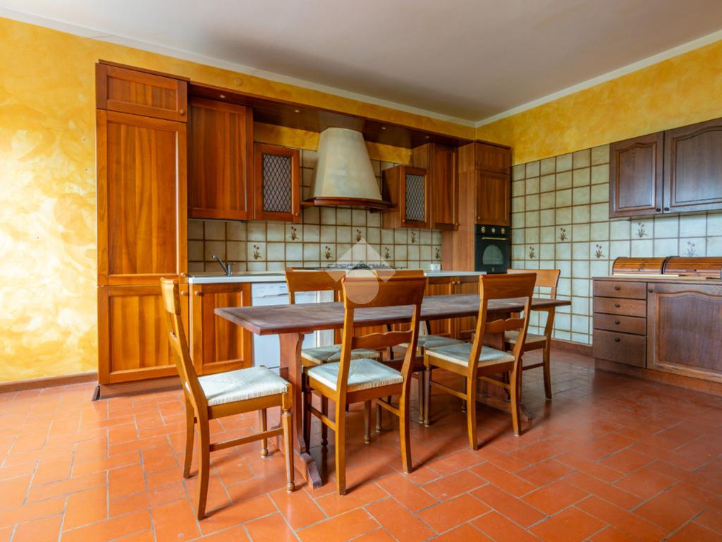 Al piano primo si trova la zona abitativa: ingresso su soggiorno separato tramite un arco dall'ampia cucina, due camere matrimoniali con parquet, secondo bagno finestrato con vasca e ripostiglio; la zona abitativa è collegata alla zona servizi tramite una scala interna e tramite una scala esterna.
